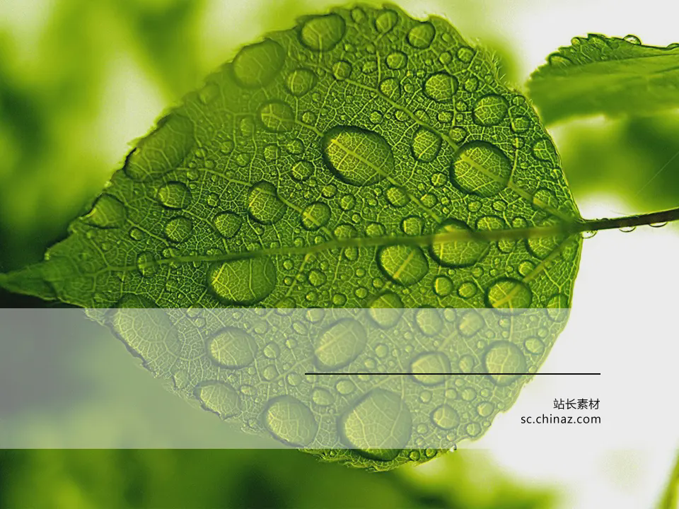 清新绿色叶子水滴背景的植物幻灯片模板