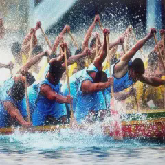 以清新的湖水为背景的端午节PPT模板