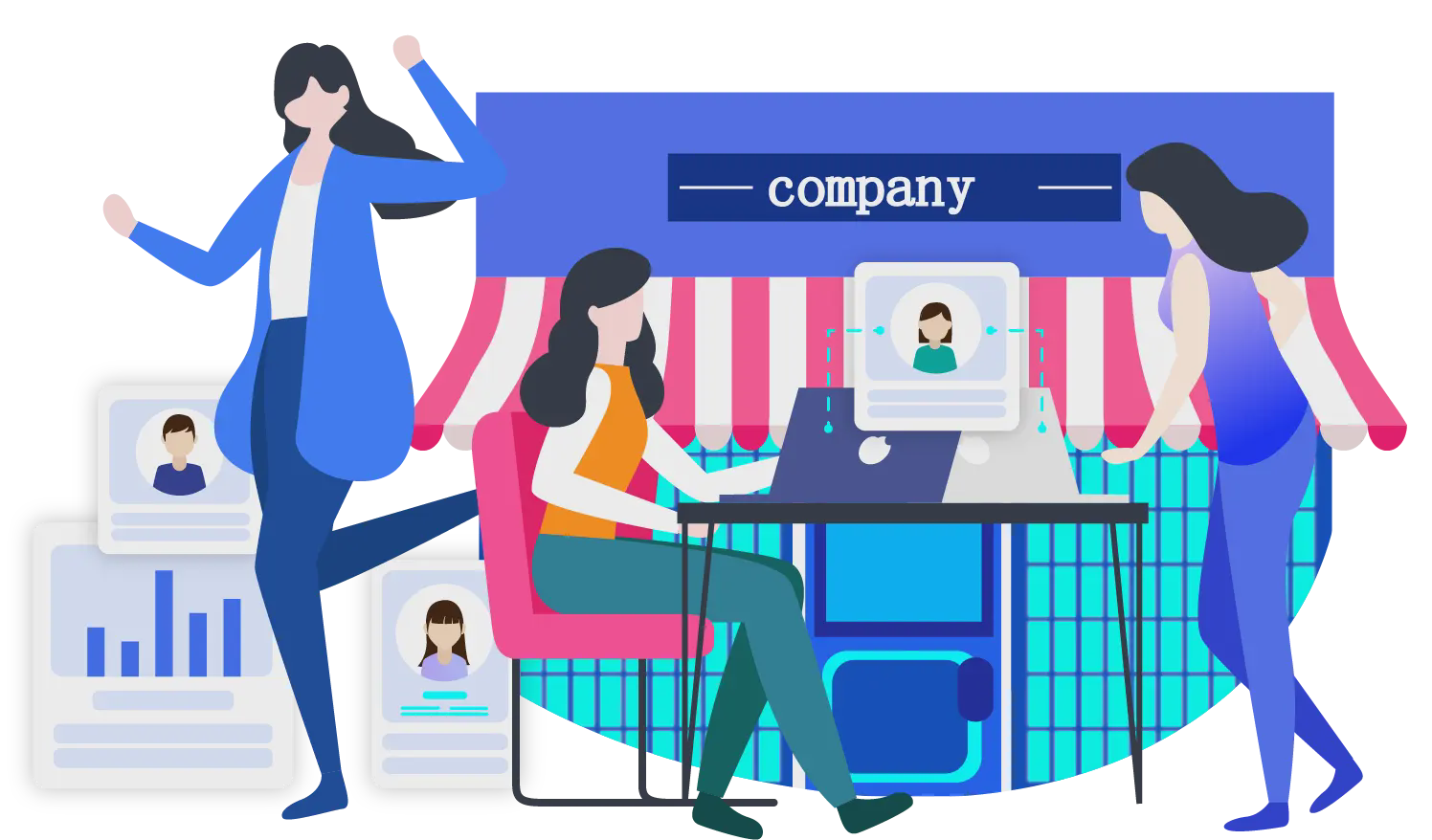蓝色时尚扁平化网上购物PPT主题模板