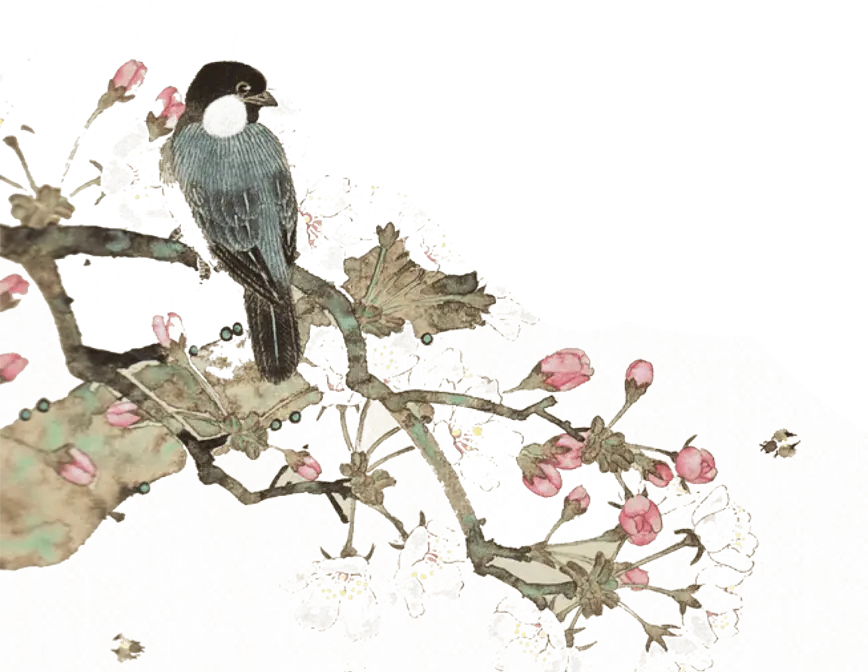 简单而优雅的水墨花鸟PPT模板所有素材批量下载