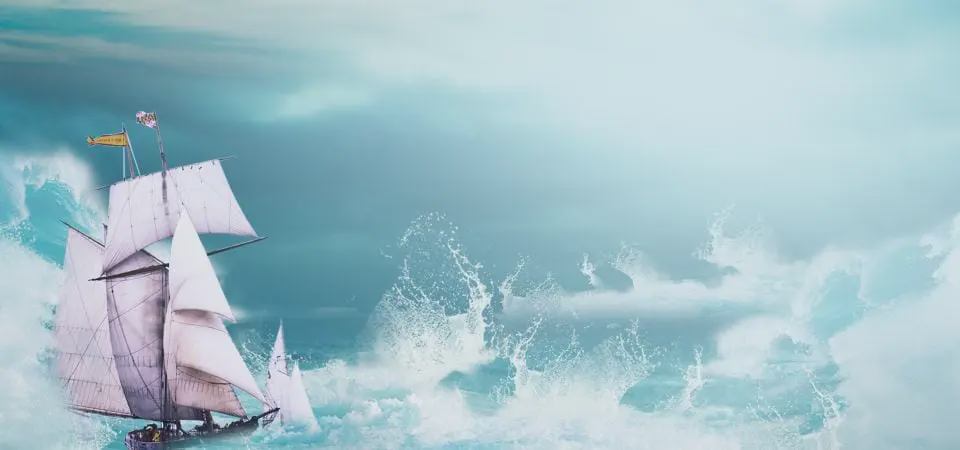 商业计划书PPT模板,有帆船航行的背景