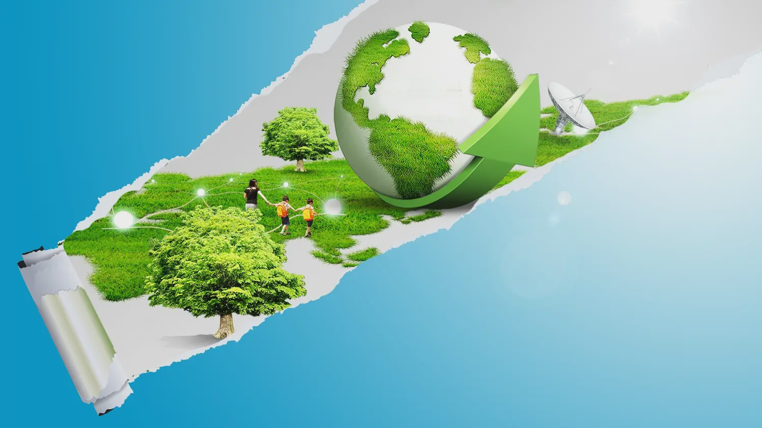 环境保护PPT模板,以地球草为背景