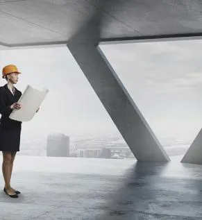 商业写字楼背景的建筑施工安全幻灯片模板