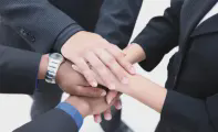 蓝色图形排版设计企业宣传公司简介PPT模板