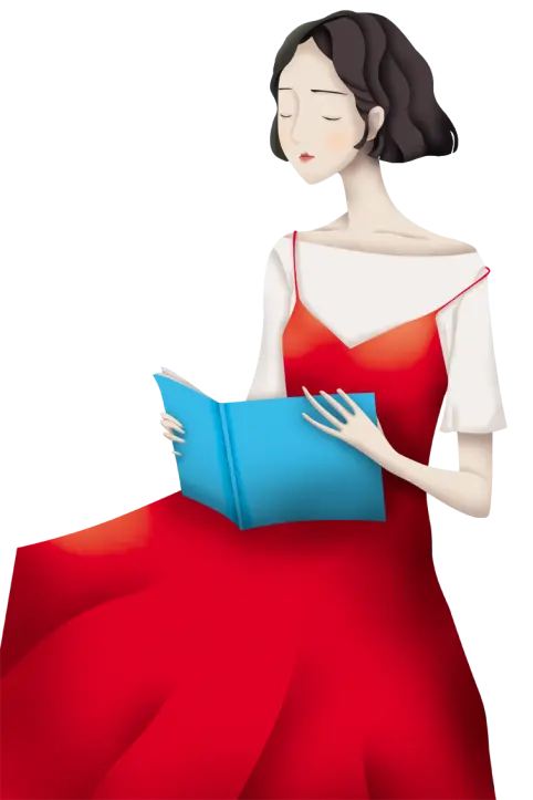 插图风格的读书人背景 女王节PPT模板