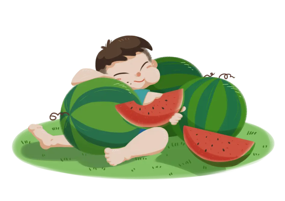 卡通小男孩吃西瓜背景的小暑节气活动策划PPT模板