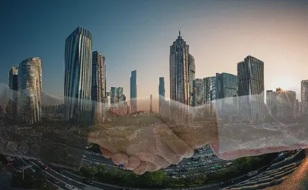 以城市夜景为背景的营销方案PPT模板