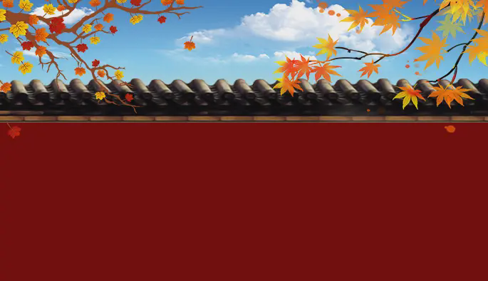 以蓝天、白云、枫叶和古城墙为背景的秋分主题PPT模板