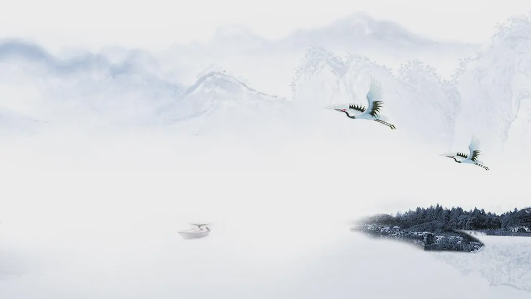 优雅的水墨山水背景的唐诗宋词PPT模板