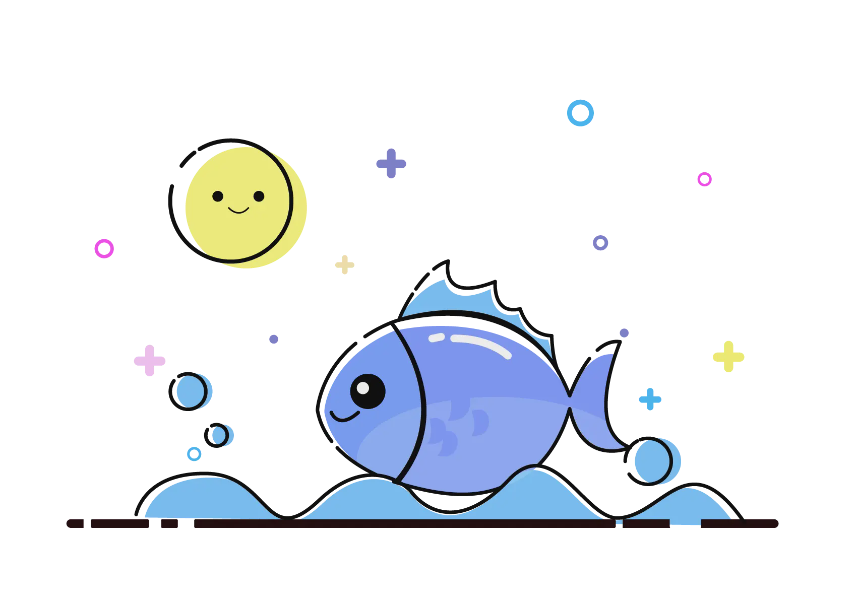 蓝色可爱卡通海洋世界PPT模板所有素材批量下载