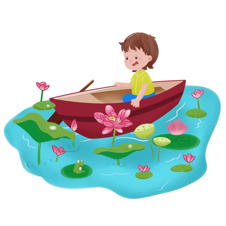 夏至PPT模板,一个小男孩在荷叶间钓鱼的背景