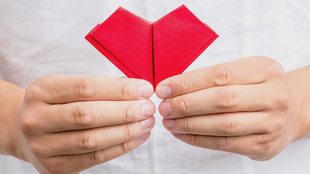 红色爱心折纸背景 关爱主题爱心慈善PPT模板