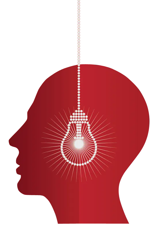 红色工作竞标报告PPT模板,人头和灯泡背景