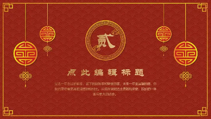 以古典传统图案为背景的元旦主题PPT模板预览