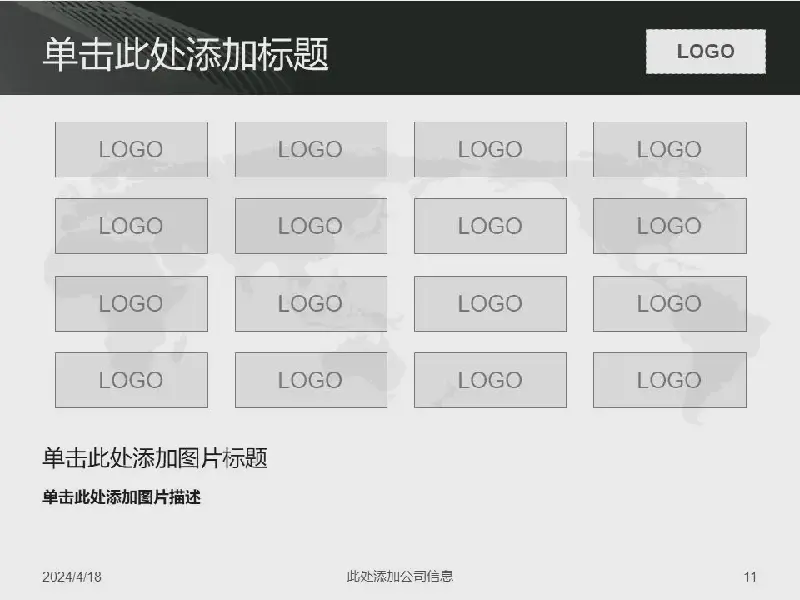以世界地图为背景的线条商业幻灯片模板介绍