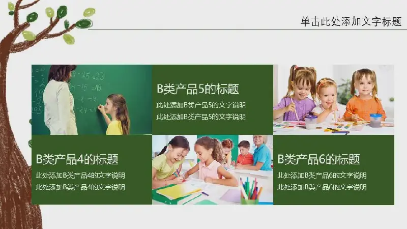 PowerPoint模板内容页,由24张绿色动态幻灯片图表组成。同时使用多个学生图片、教师图片、教室图片和其他排版。