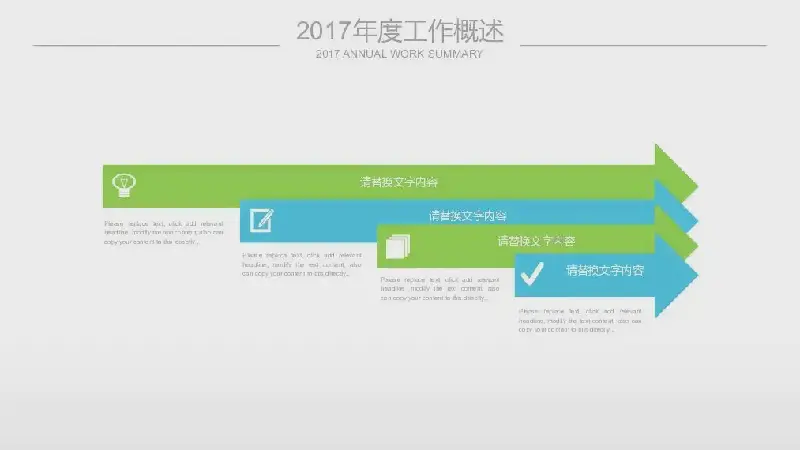PPT模板的內容頁由蓝色图标幻燈片圖表組成,採用蓝的配色方案和PPT文本佈局。